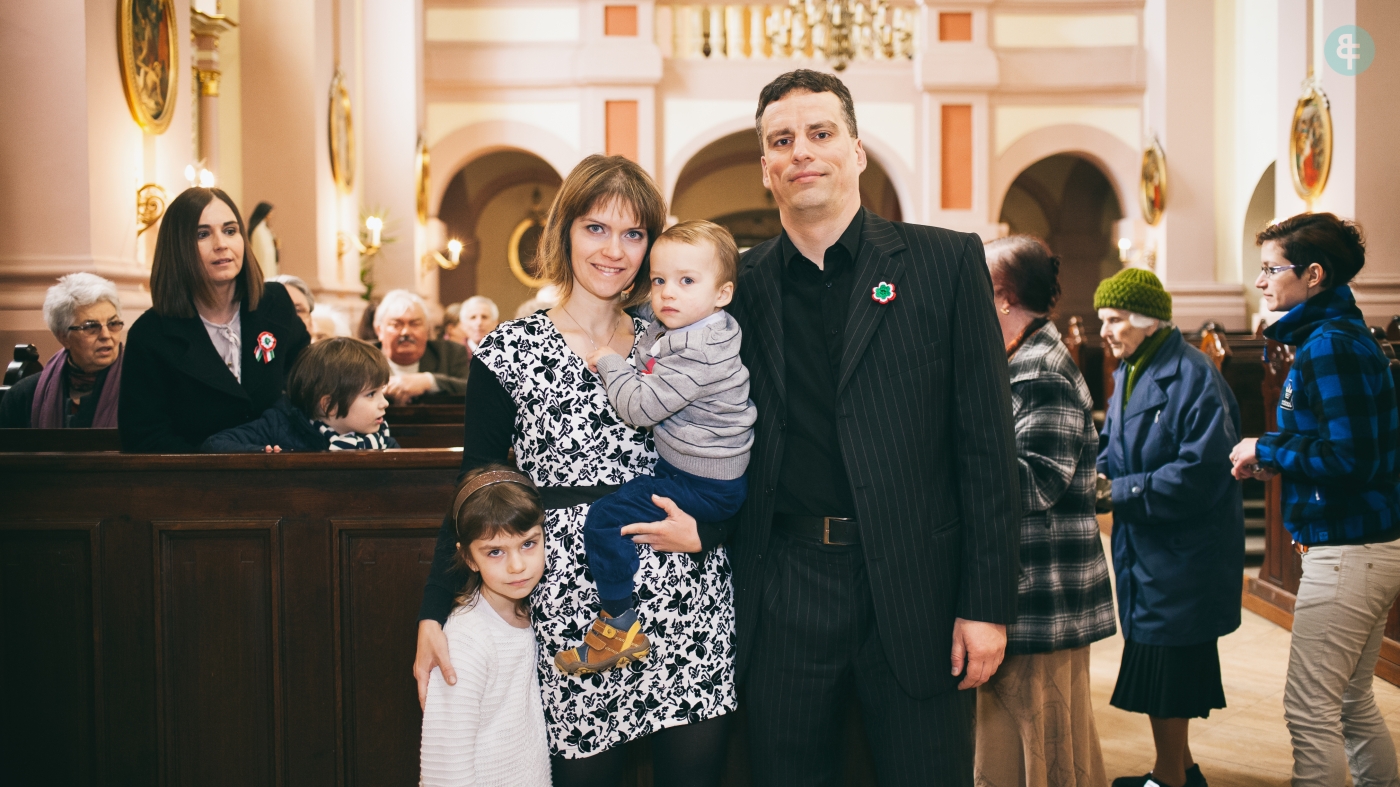 Ádám keresztelő fotózása Kecskeméten – Barátok temploma és családi pillanatok