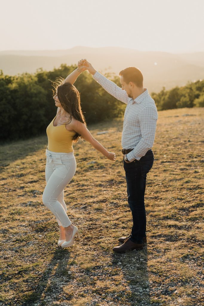 Ez a galéria a Hármashatárhegy csodás panorámájában készült, ahol a párok számára a természet és a romantika tökéletes hátteret biztosít. A fotózás során természetes jegyesfotók készültek, ahol nem kellett semmilyen mesterkélt póz, a pillanatok spontánok és őszinték. A naplemente fénye különleges hangulatot adott minden képnek, így a sorozat nemcsak egy fotósorozat, hanem egy igazi emlék is a pároknak.
