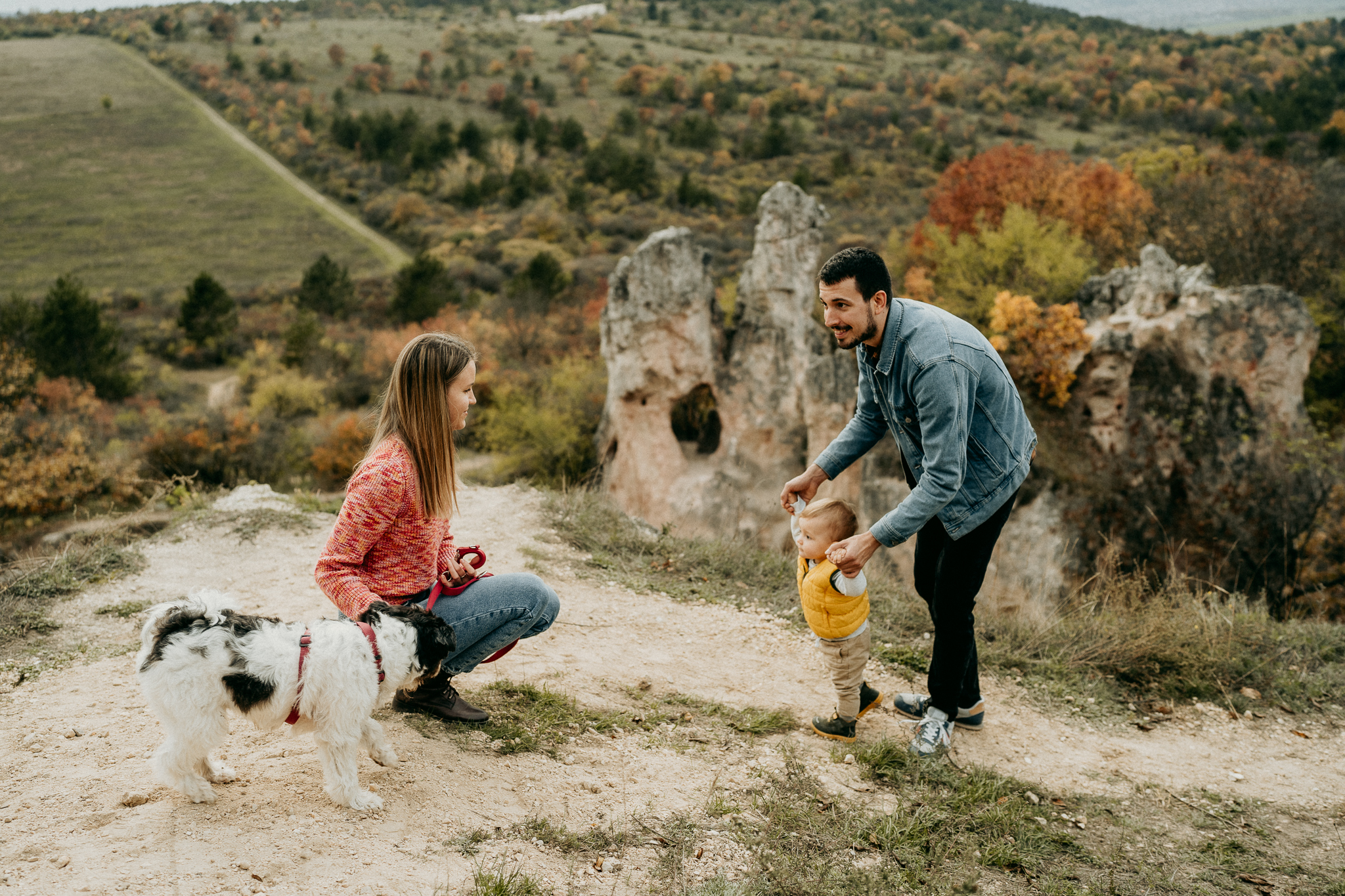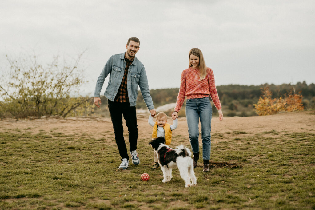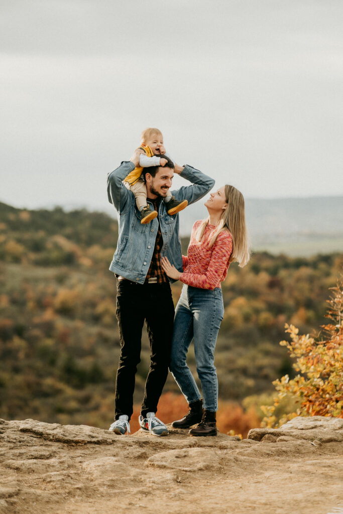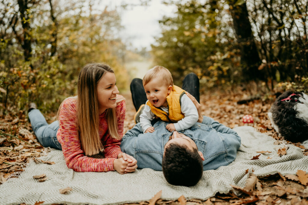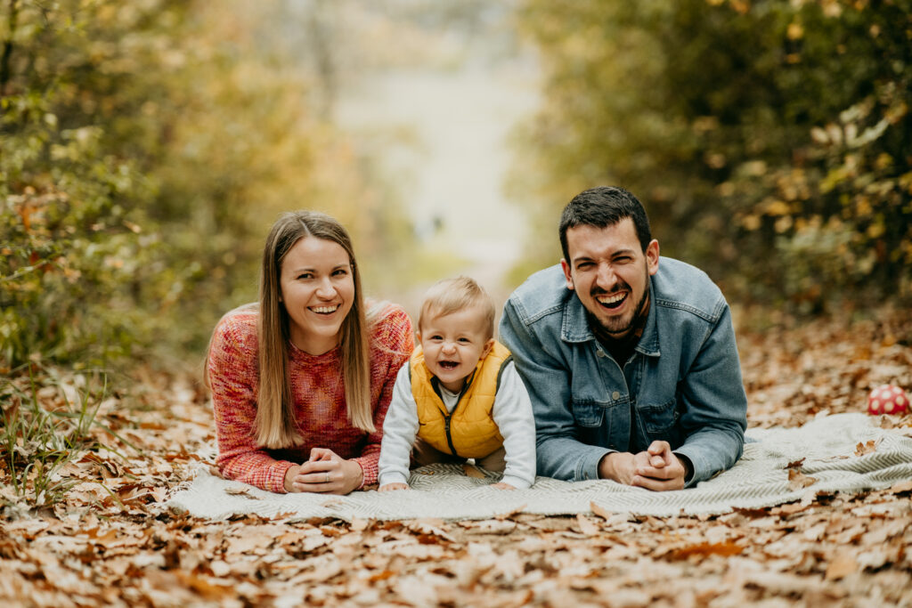 Berci, Flóra és Árpi esküvőjüket is fotóztam, majd később kismama fotózást is készítettünk róluk, és most az őszi családi fotózáson örökítettük meg a legkedvesebb családi pillanataikat. A fotózáson a természet aranyló lombjai, az őszi fények és a kreatív kompozíciók segítettek megalkotni a tökéletes, érzelmes családi képeket.