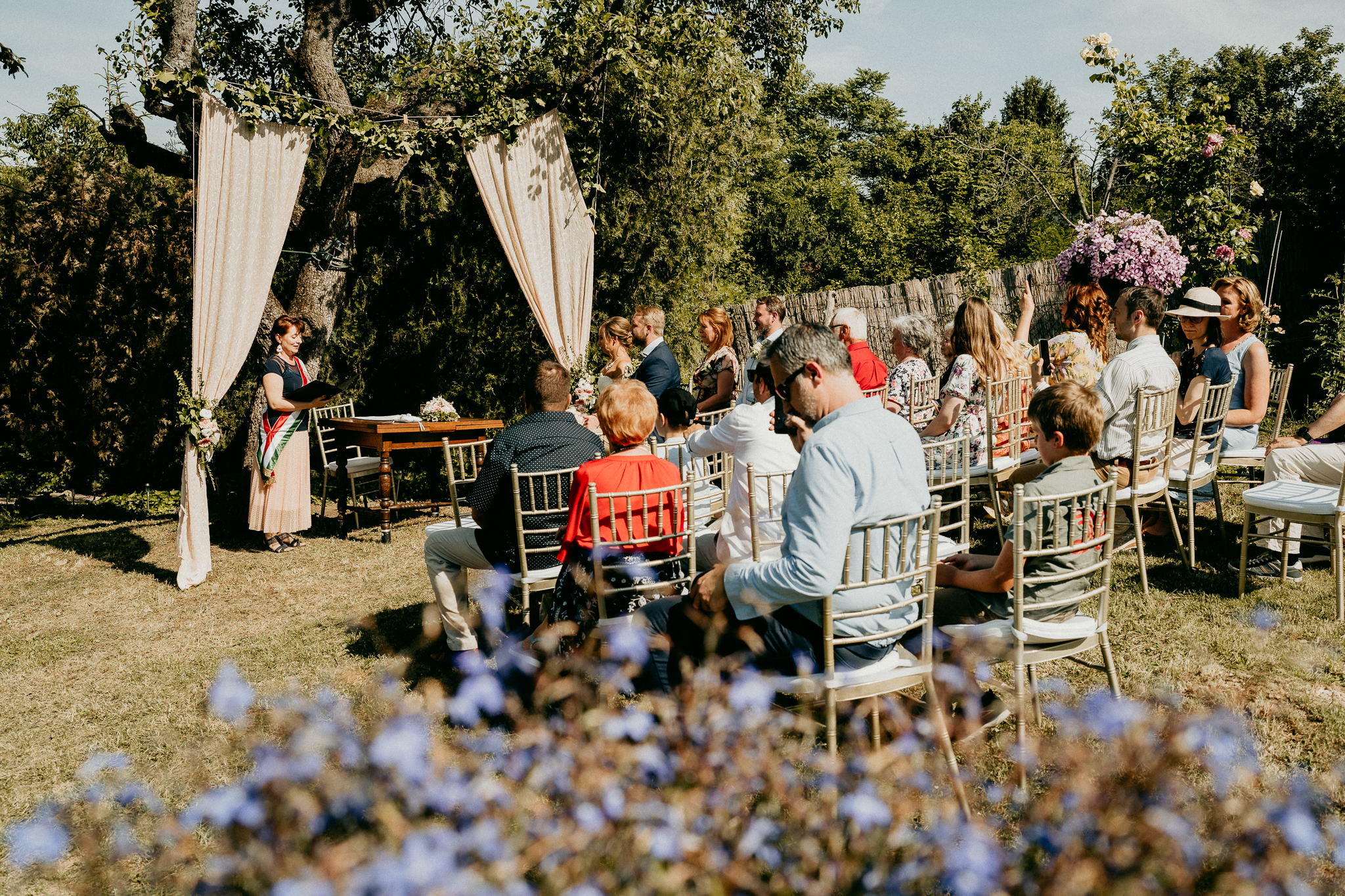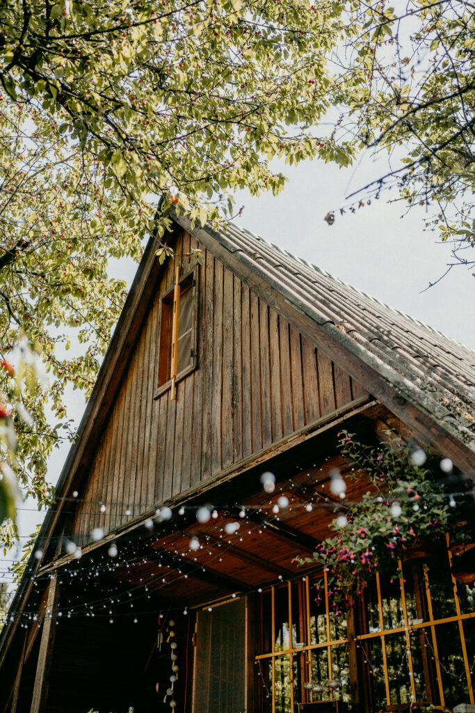Peti és Eszter esküvője egy budaörsi nyaralóban. A kis létszámú, családias esküvő vintage hangulatban zajlott, alpesi gerendaház csak hozzátett ehhez a hangulathoz a látványos szabadtéri fényekkel. A galéria bemutatja az esküvő egész napját, beleértve a szertartás meghitt pillanatait, valamint a kreatív fotózást a Budaörsi Kőhegyen, ahol a budapesti panoráma és a természet adta lehetőségek kiemelik a pár romantikus portréit.
