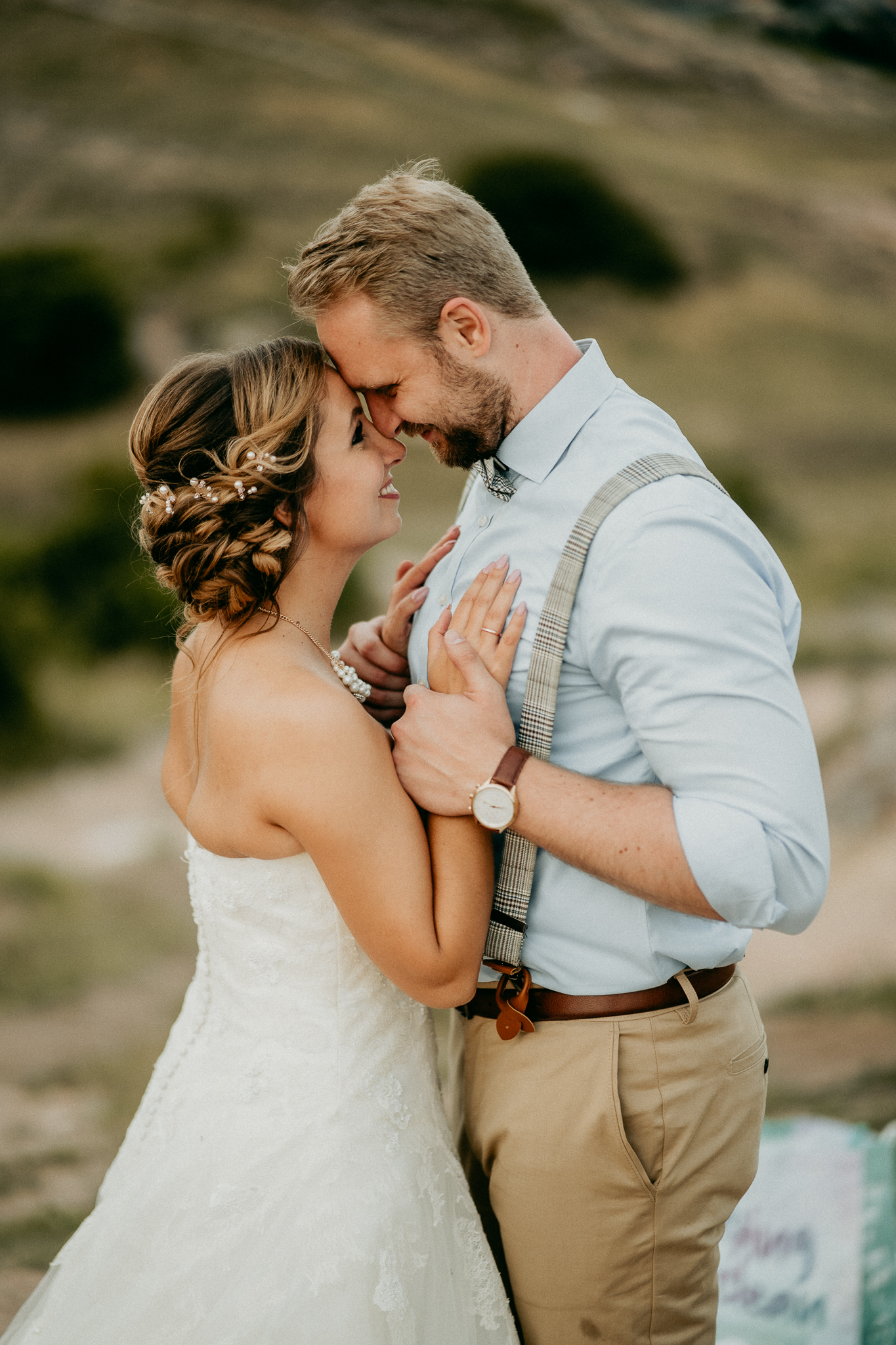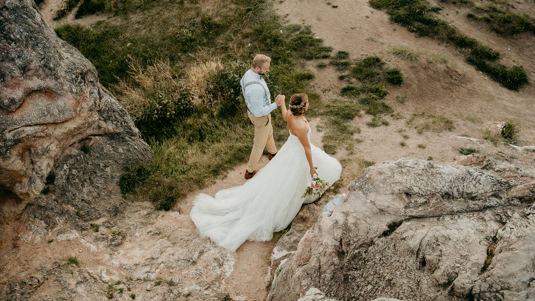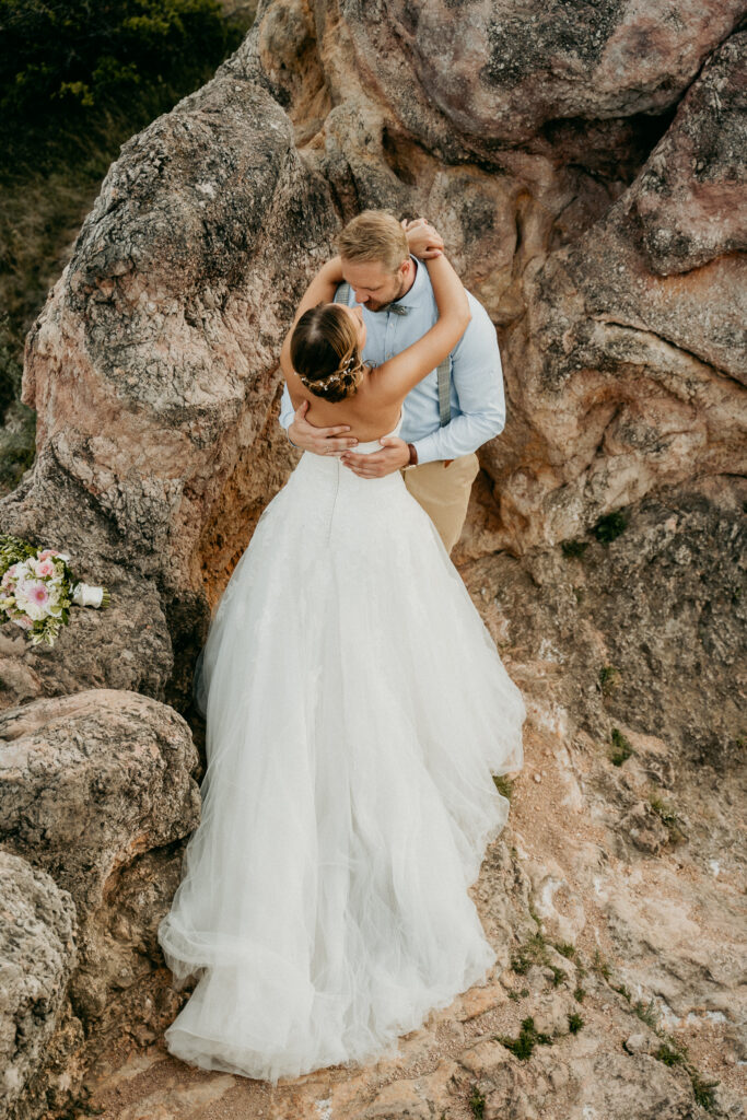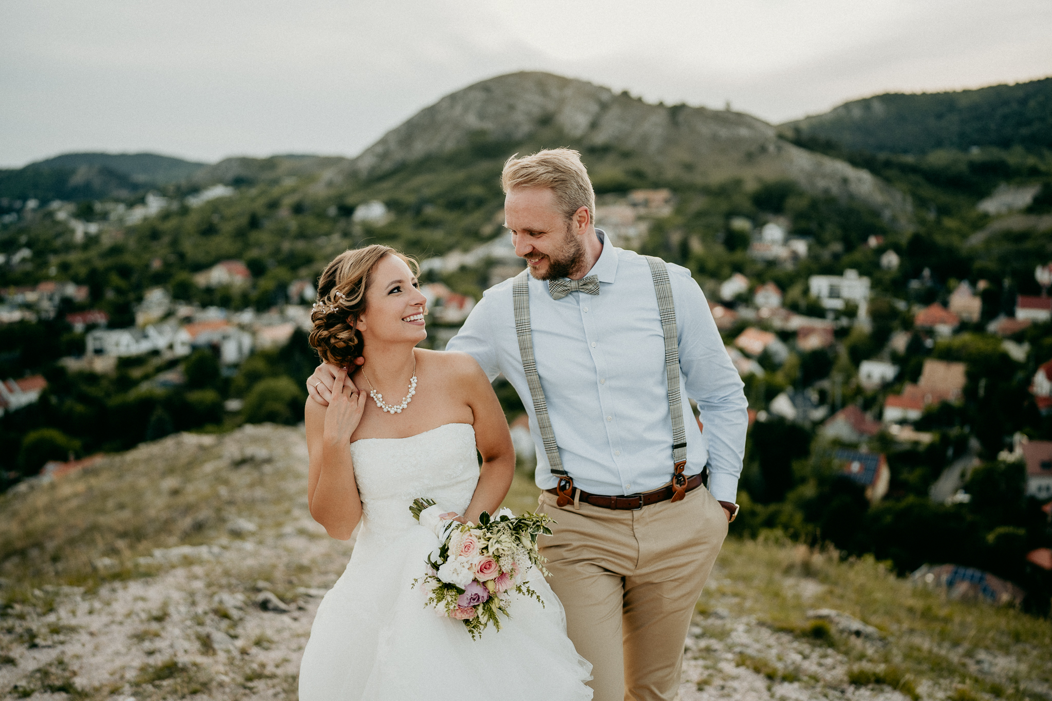 A kreatív fotózás során a párt változatos perspektívákból, természetes fényekben és művészi kompozíciókkal örökítettük meg, miközben a Kőhegy látványos panorámája és a környező táj segített a vintage, romantikus hangulat visszaadásában. A galéria fókuszában a pár portréi, részletfotók és kreatív beállítások állnak, kiemelve a nap különleges és időtálló hangulatát.